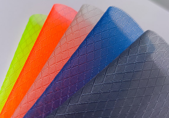 這種織物采用兩種編織技術,提花和條帶編織。它是指使用單根復絲進行織造和提花織造。這種尼龍面料的形狀是由復絲編織的方格和單絲提花技術編織的小四角組成的復合面料。
